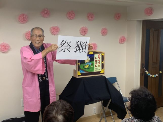 今回は、紙芝居同好会の会長 植田様にお越しいただき、2本、紙芝居をしていただきました。始める前に、皆さまにクイズを出されました。