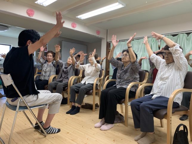 「サザエさん」の音楽に合わせて、楽しく体を動かしました。